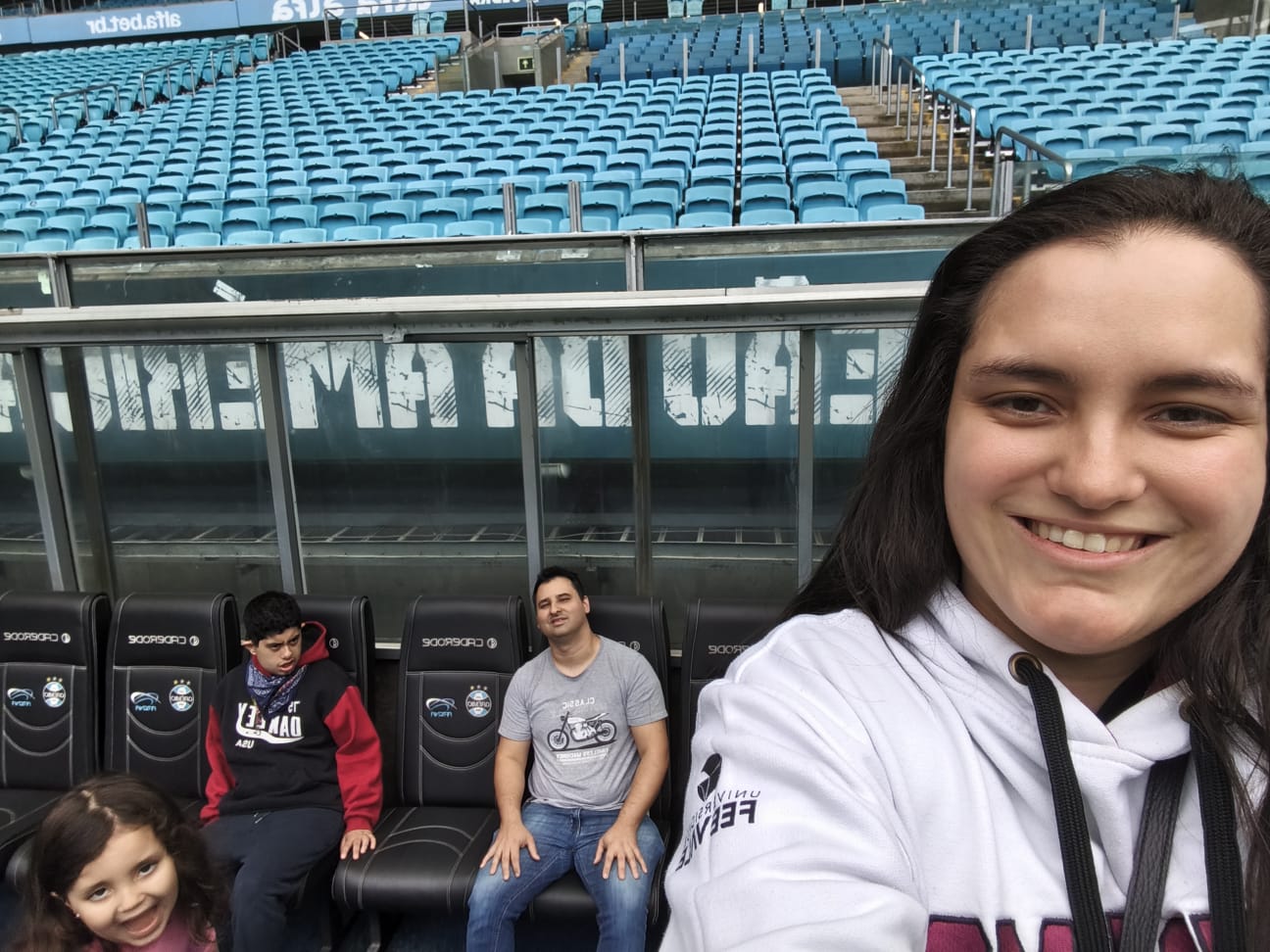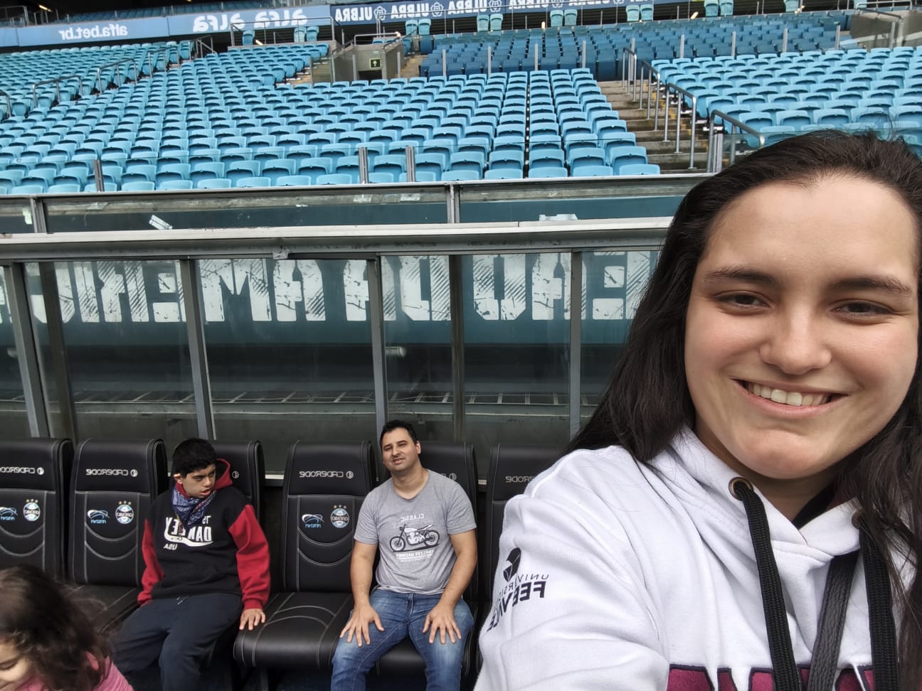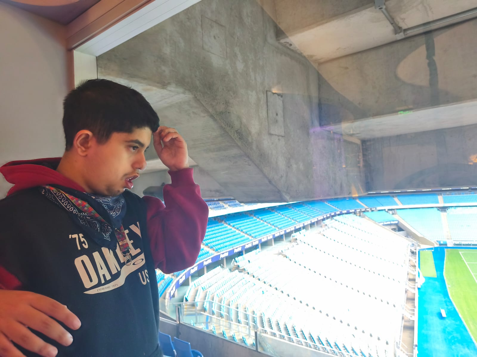 Esperamos um pouco para iniciar; alguns funcionários não conheciam o tour específico. Com a chegada da guia, seguimos de elevador. Há acompanhante qualificada durante o tour e, em dias de jogo, também no camarote — ponto muito positivo. Nessa edição, além de nós, havia uma família com um menino no espectro.