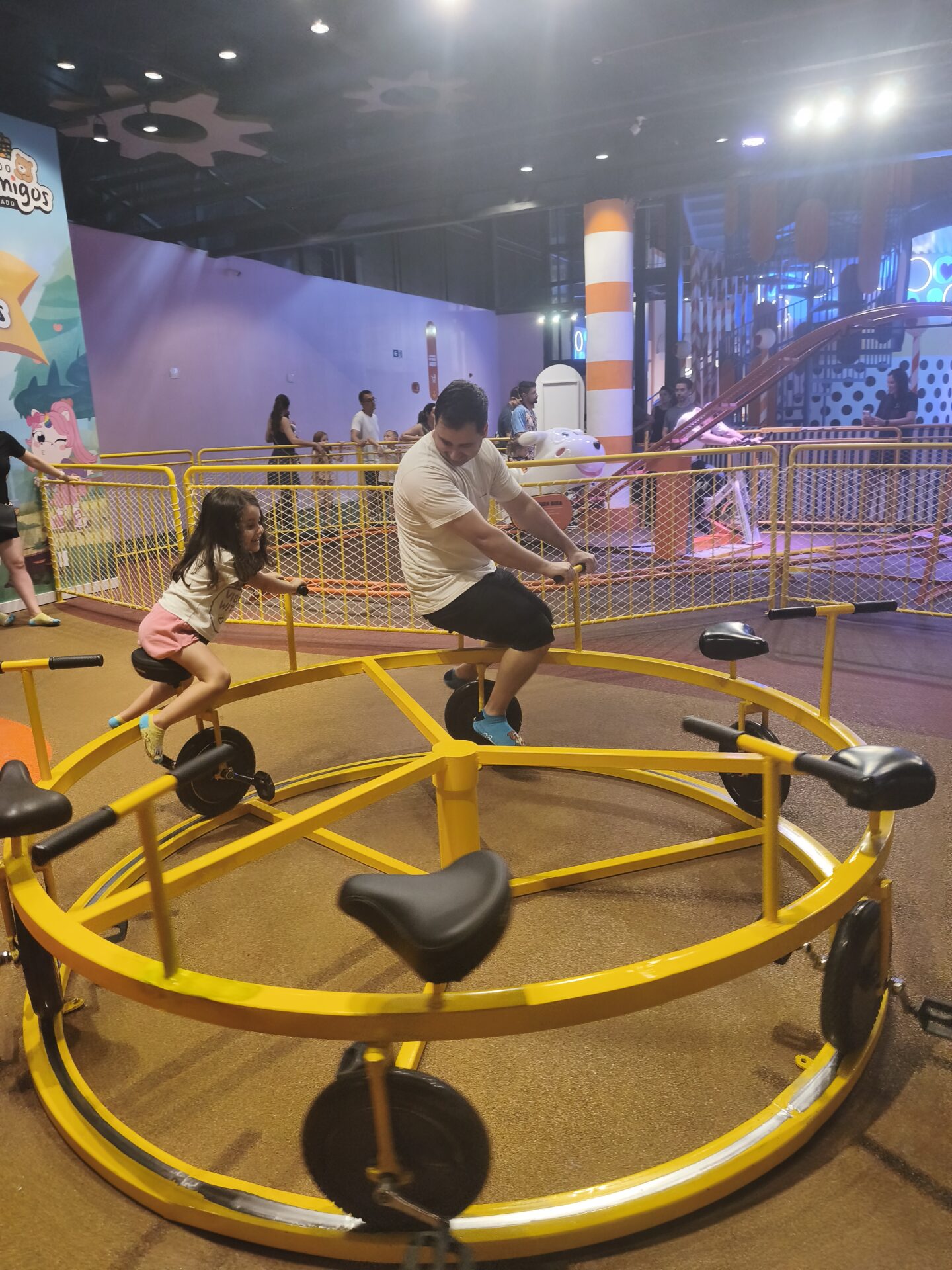 O parque é grande, com dois andares e diversos brinquedos e atrações de estilos diferentes. Isso é ótimo porque permite variar o tipo de atividade: dá para alternar entre algo mais intenso e outra opção mais leve.