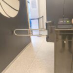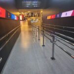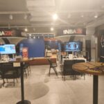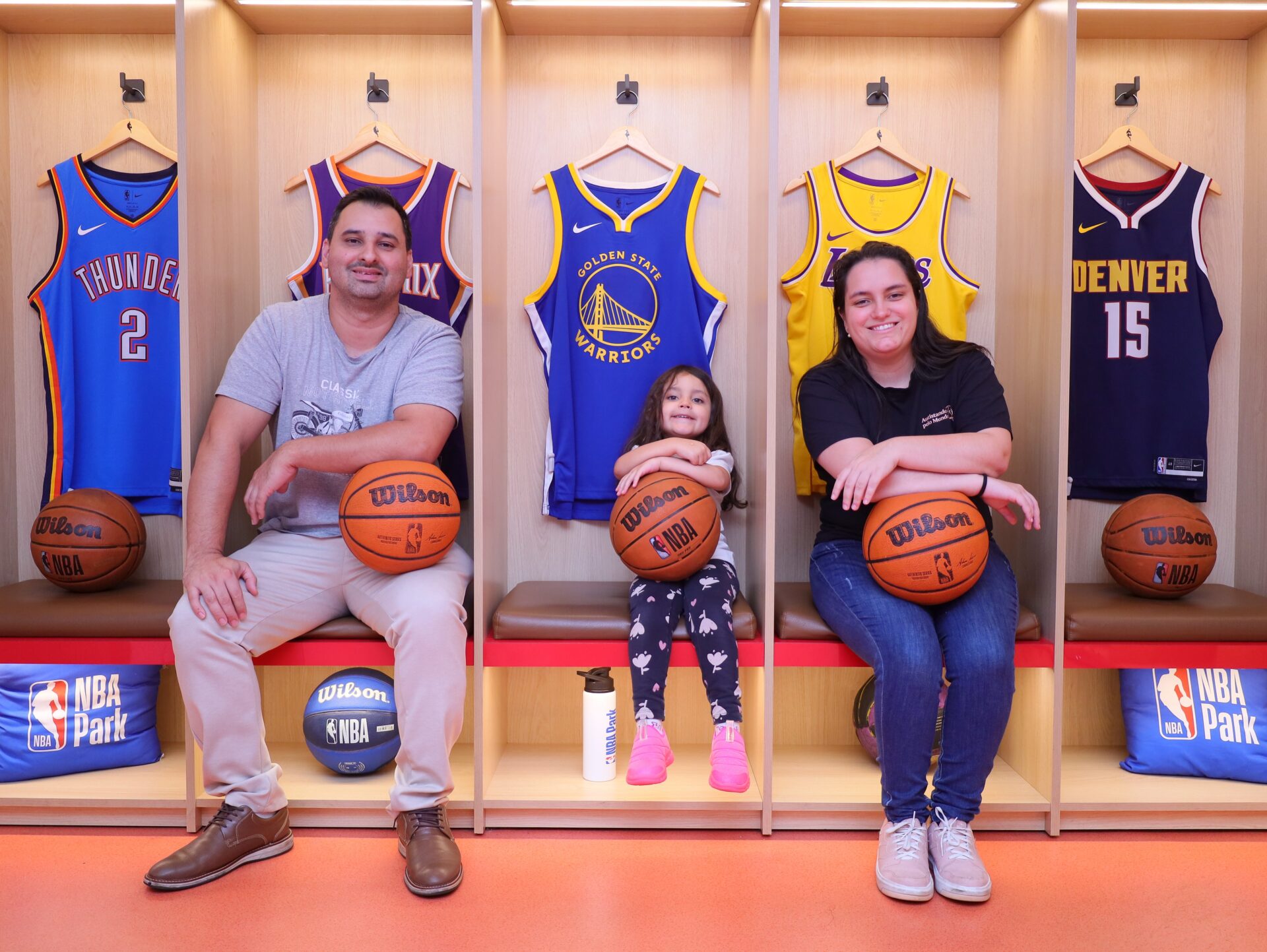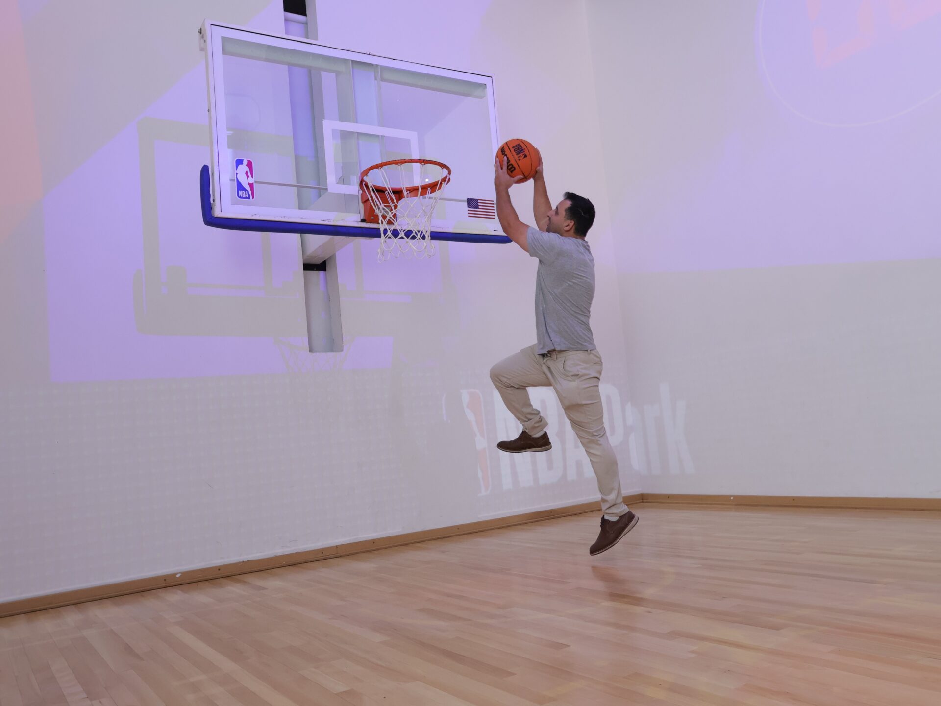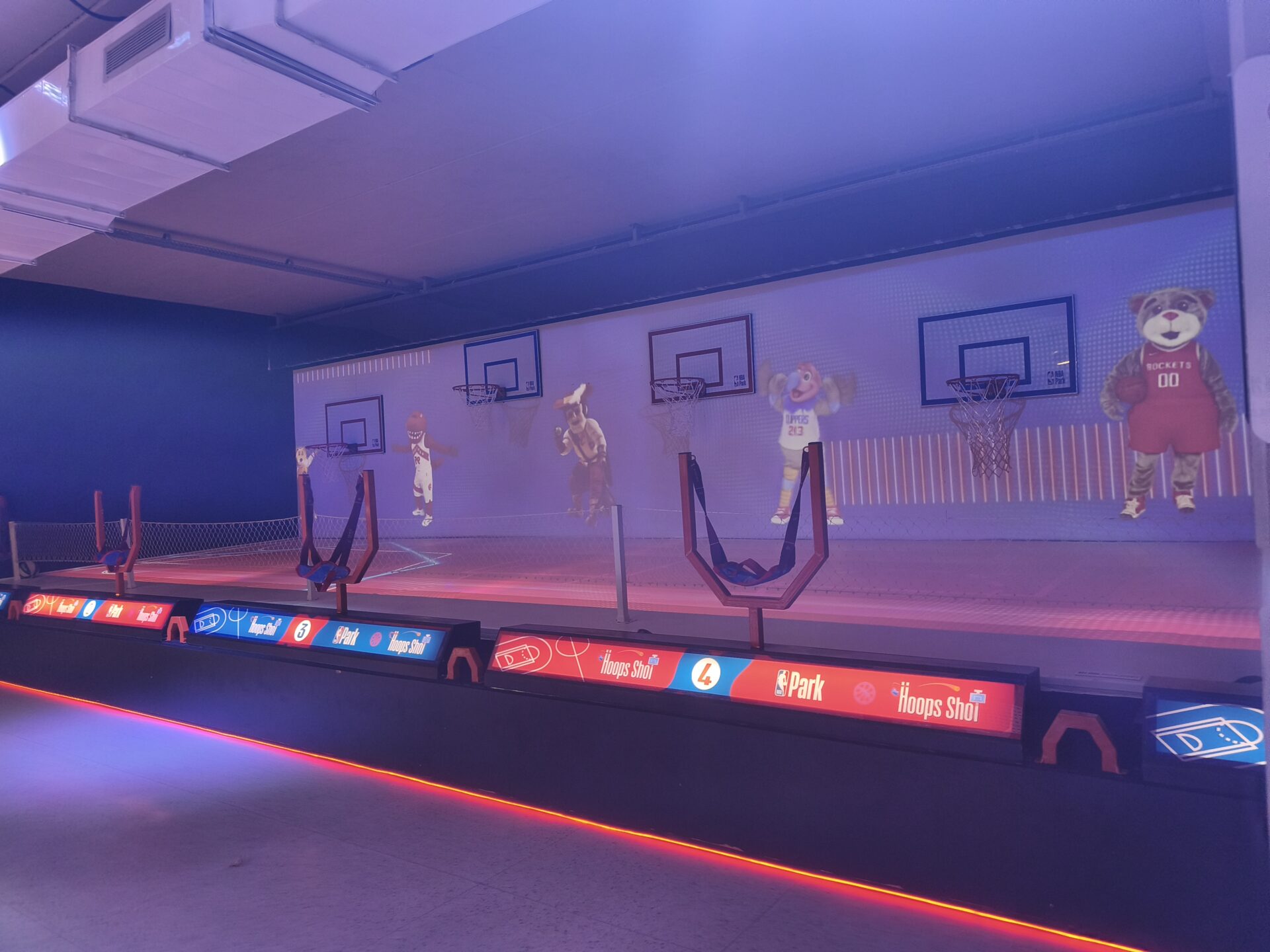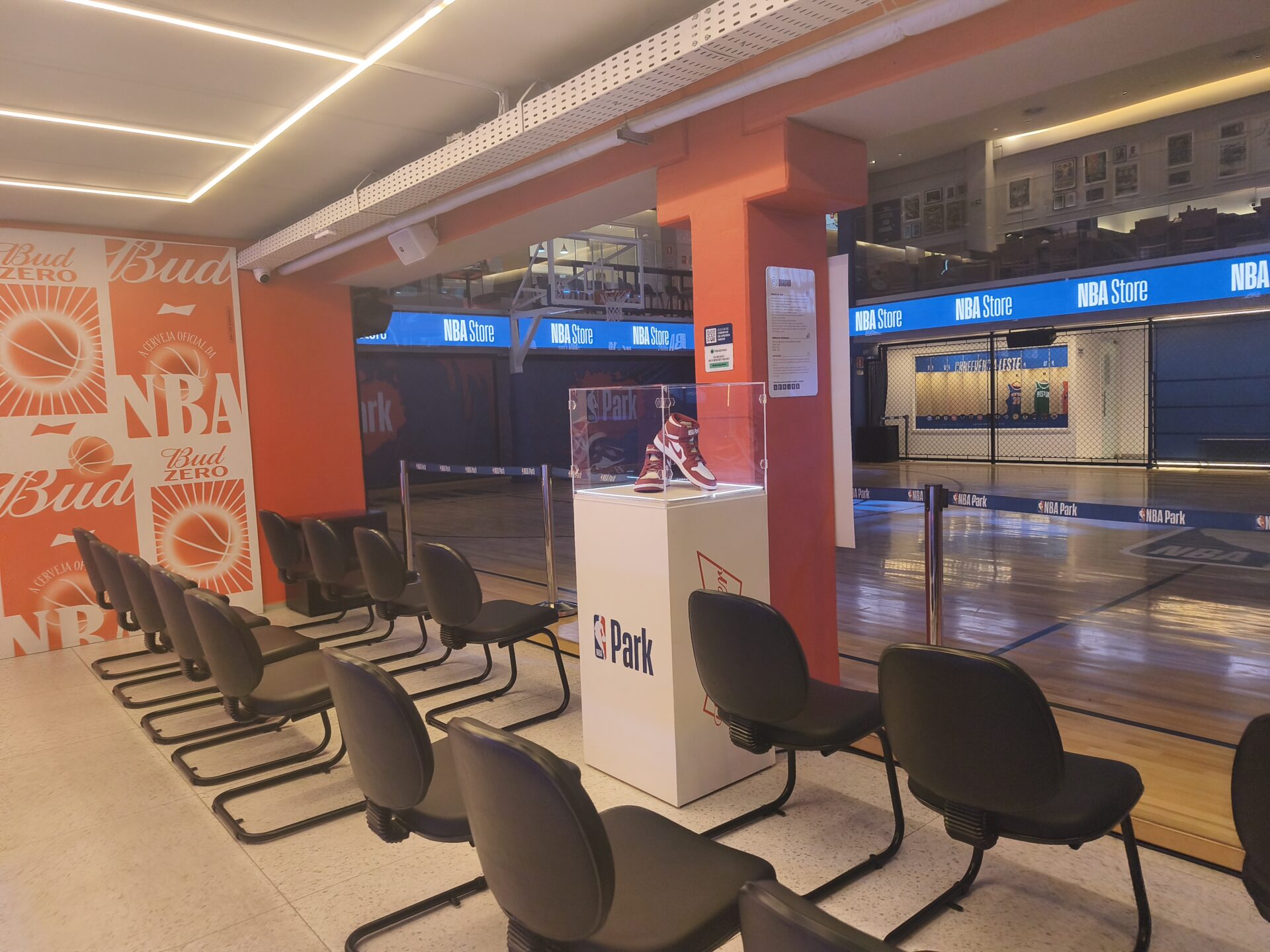 Durante a visita, foi possível identificar alguns recursos que contribuem para uma experiência mais acessível dentro do NBA Park: